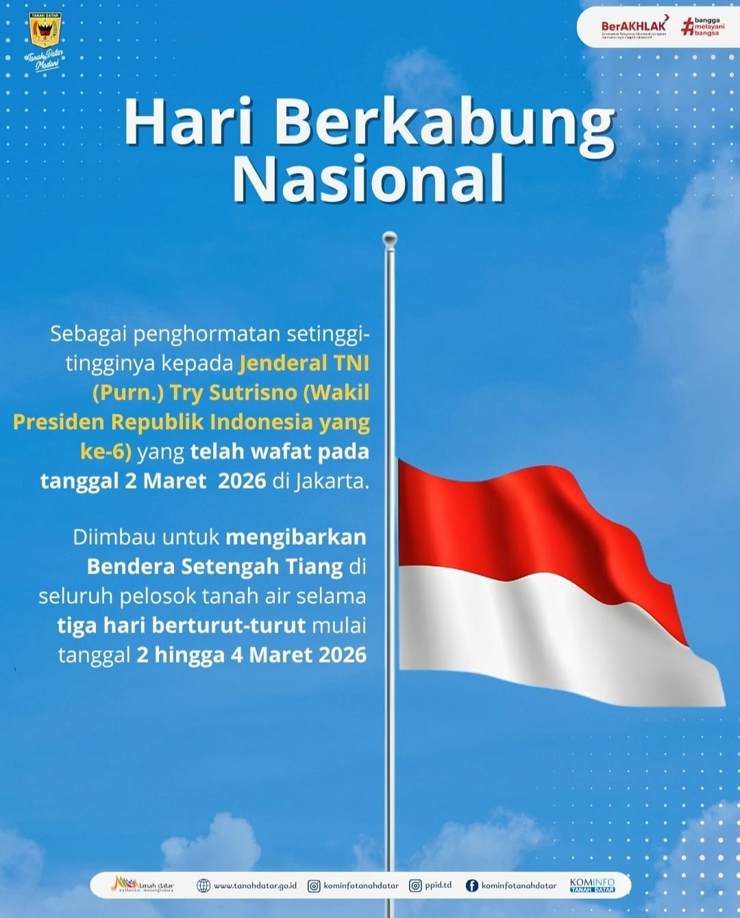 Pengumuman sebelumnyaSURAT EDARAN BUPATI TANAH DATAR SELAMA BULAN RAMADHAN Pengumuman setelahnyaSELAMAT HARI RAYA IDUL FITRI 1447 H